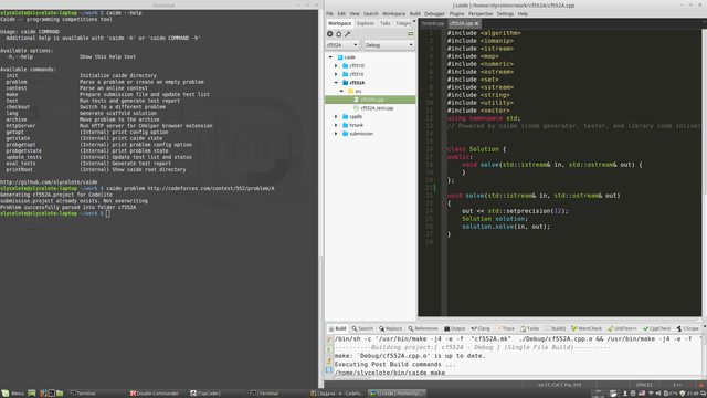 Codelite and command line caide in Linux: (full size)