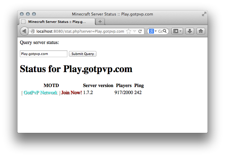 php > $m = new MinecraftStatus('Uberminecraft.com');