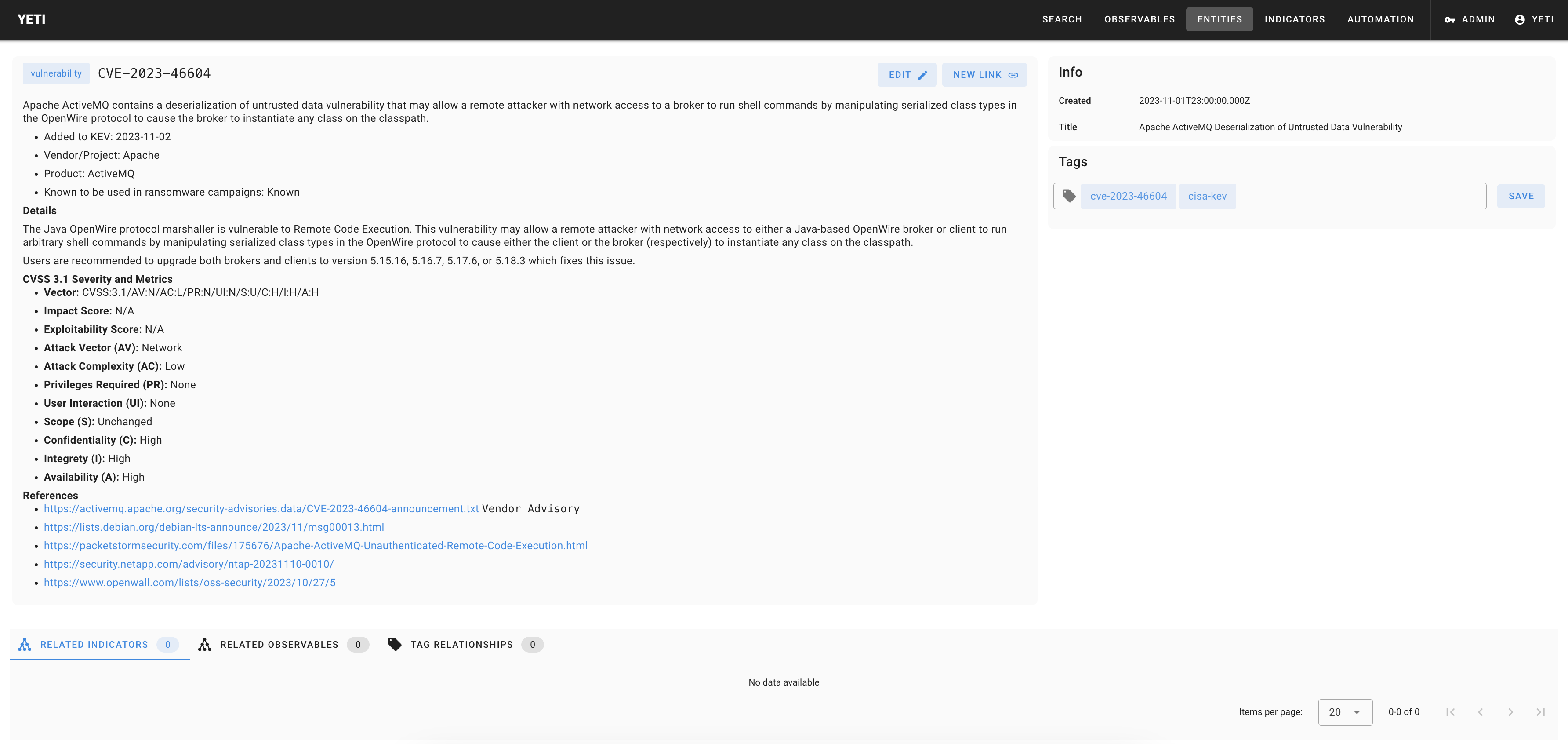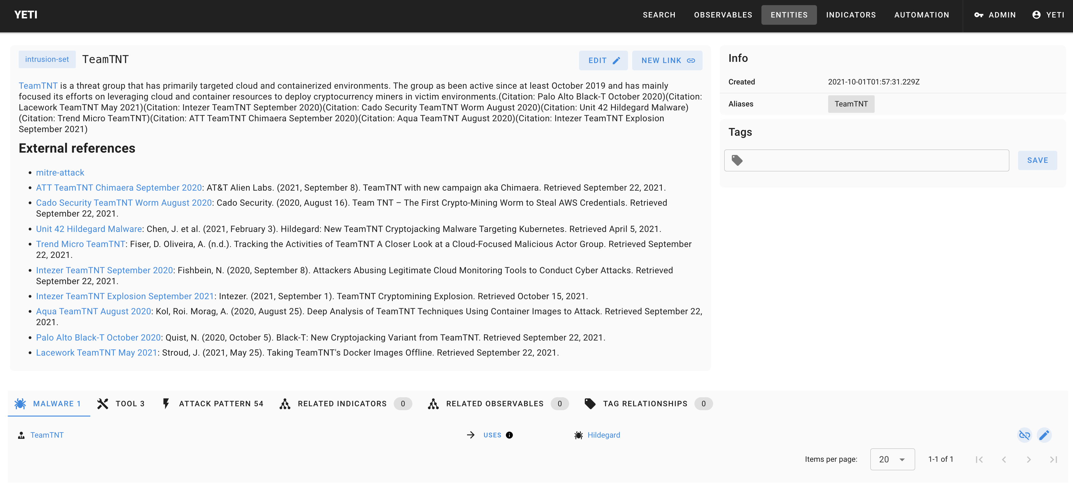 - Main website: https://yeti-platform.io/